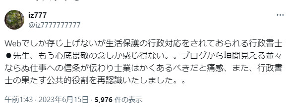 こちらの行政書士泉法務研究所の泉祐三先生も、以前より弊所のブログをお読み頂き、こんな嬉しいツイートをしてくださっていました。