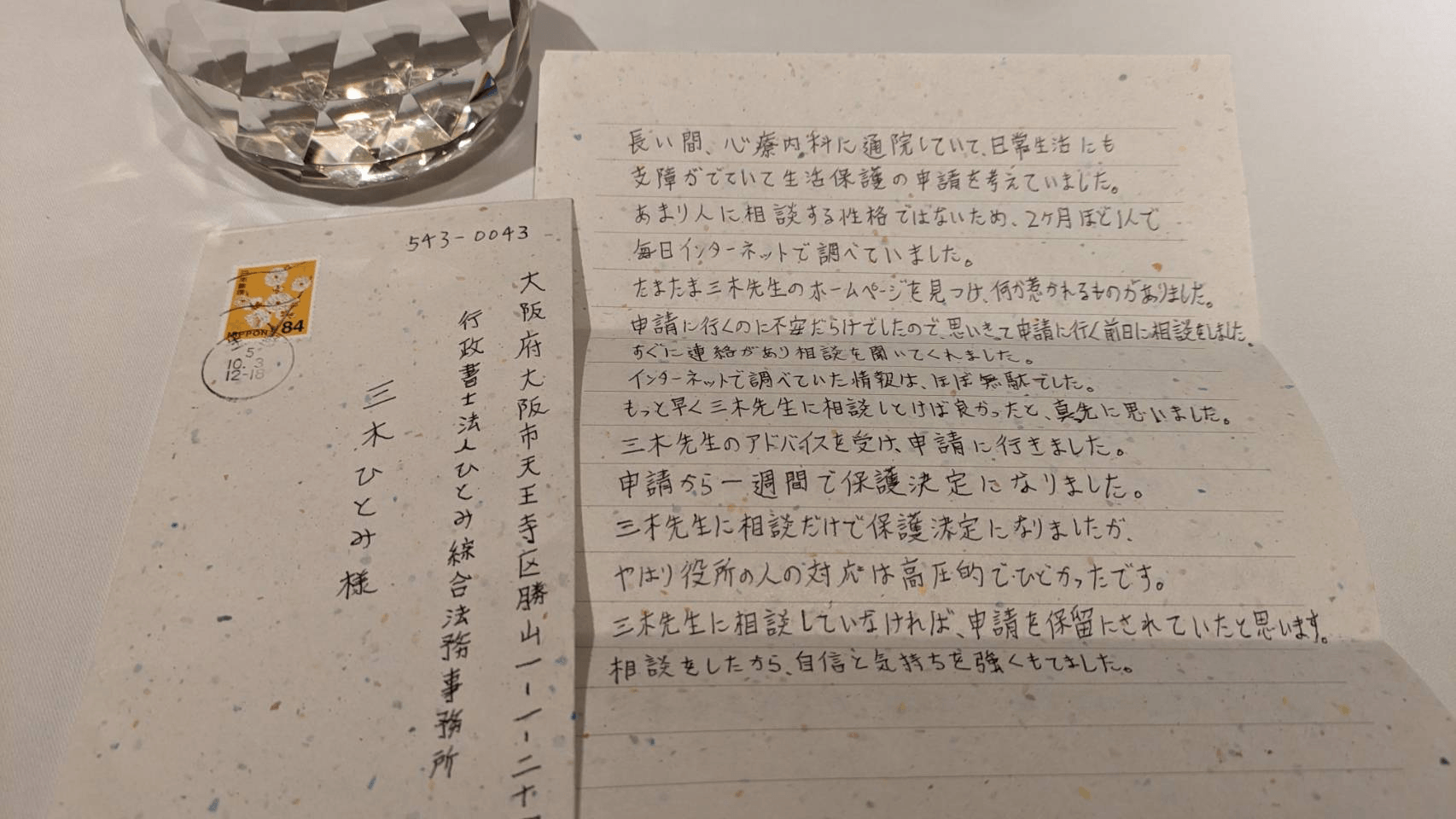 三木先生に相談だけで保護決定になりましたが、やはり、役所の人の対応は高圧的で、ひどかったです。
