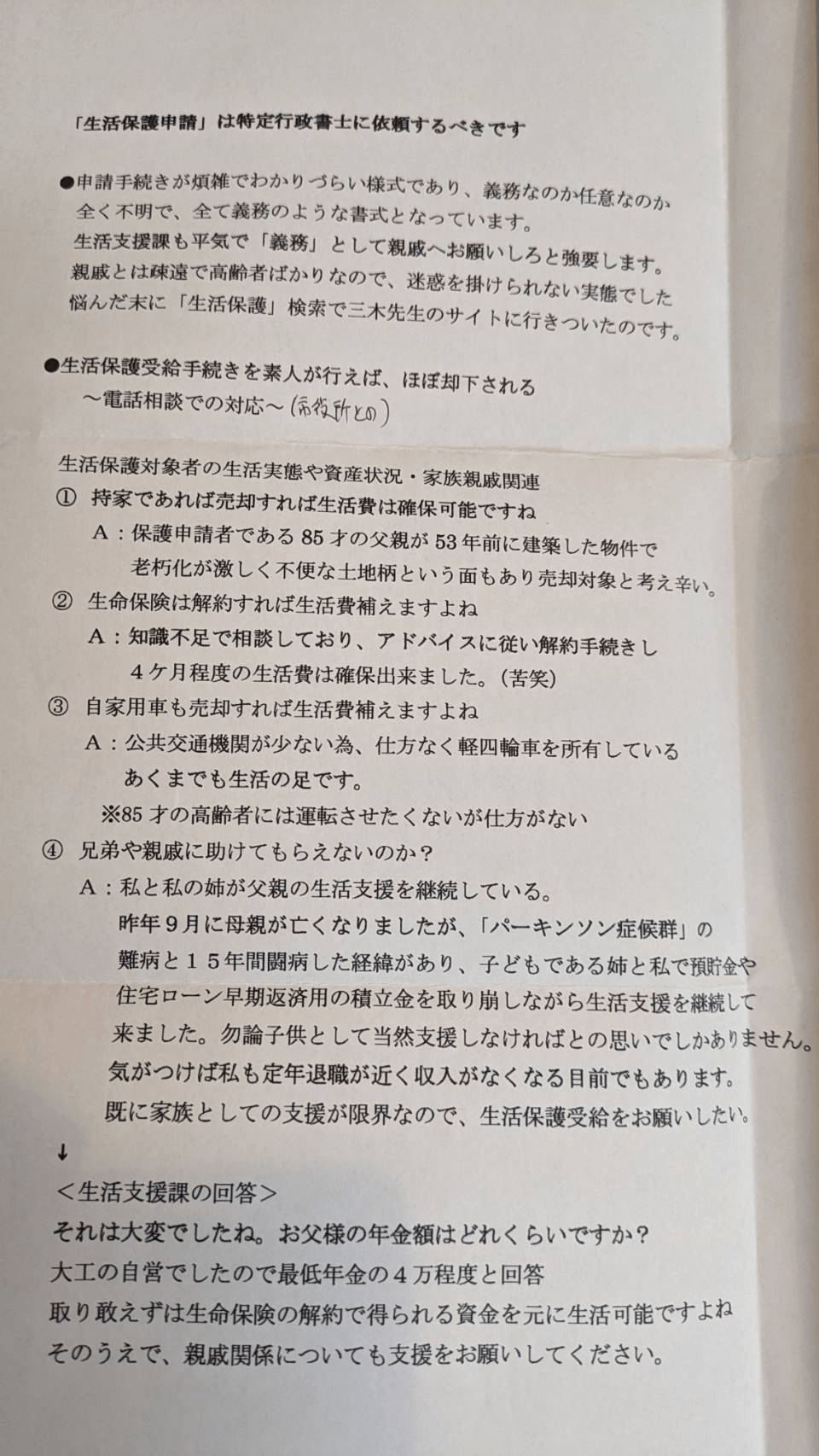 (他県にお住いの80代のお父様の生活保護サポートを息子さんからご依頼頂きました。)