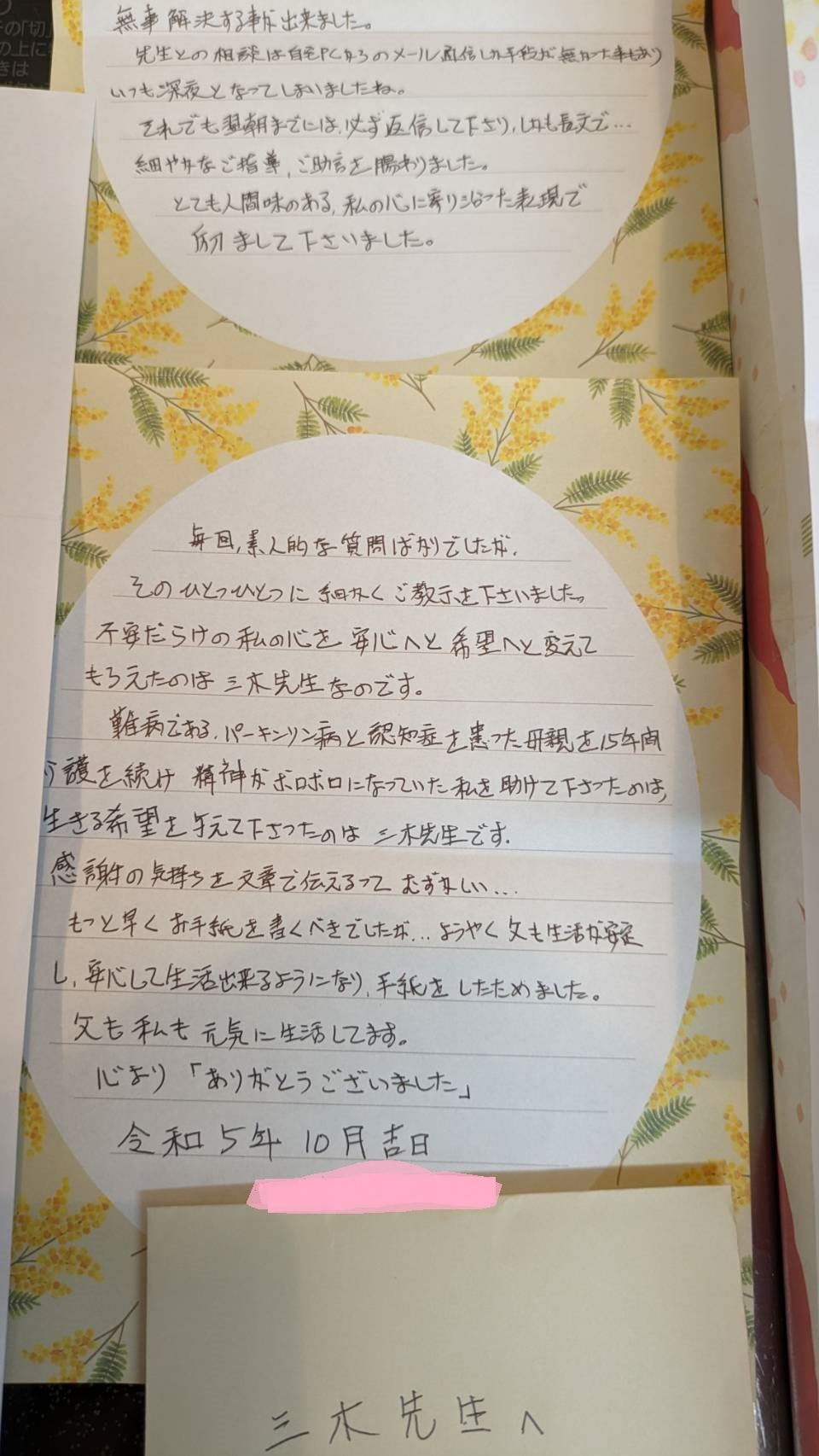 不安だらけの私の心を安心へと、希望へと、変えてもらえたのは、三木先生のおかげなのです。