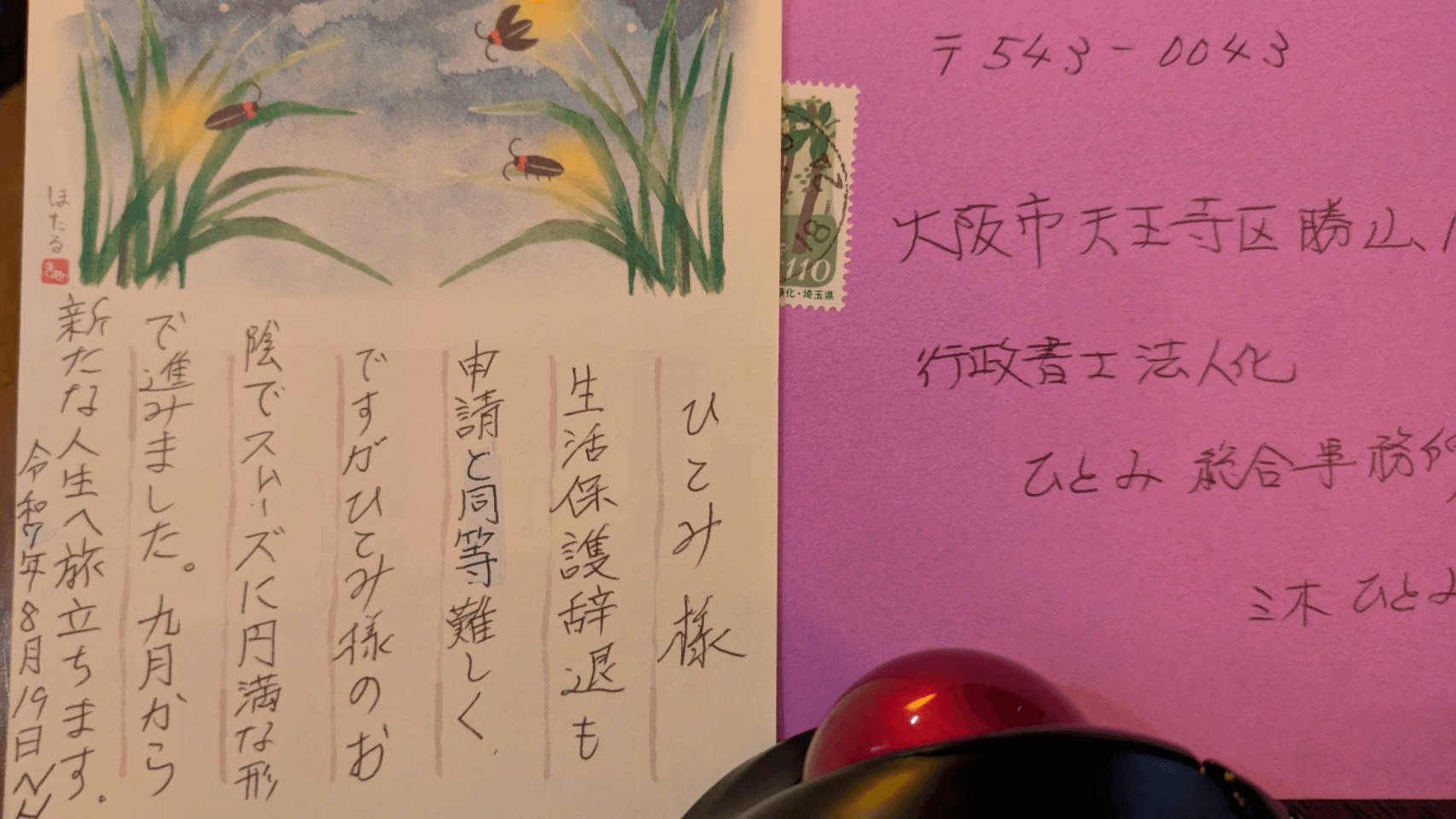 ※一時的に生活保護に頼り、その後自立された若い男性から、嬉しい夏のお葉書が届きました。