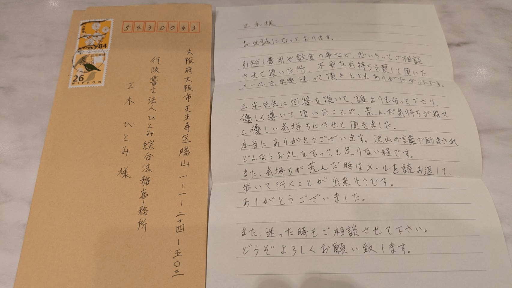 引越し費用や敷金の事など、思いきってご相談させて頂いた所、不安な気持ちを察して頂いたメールを早速送って頂きとてもありがたかったです。