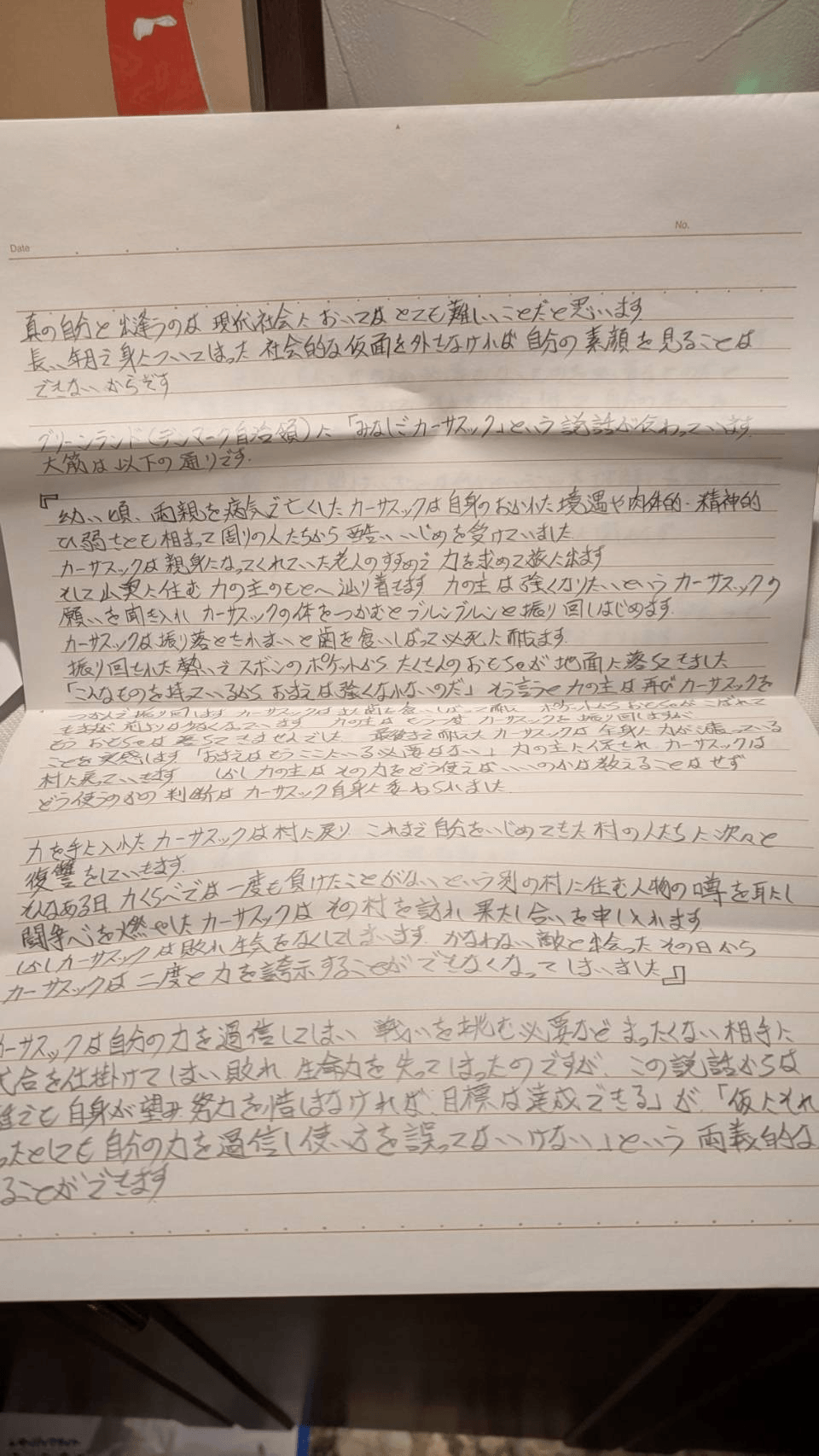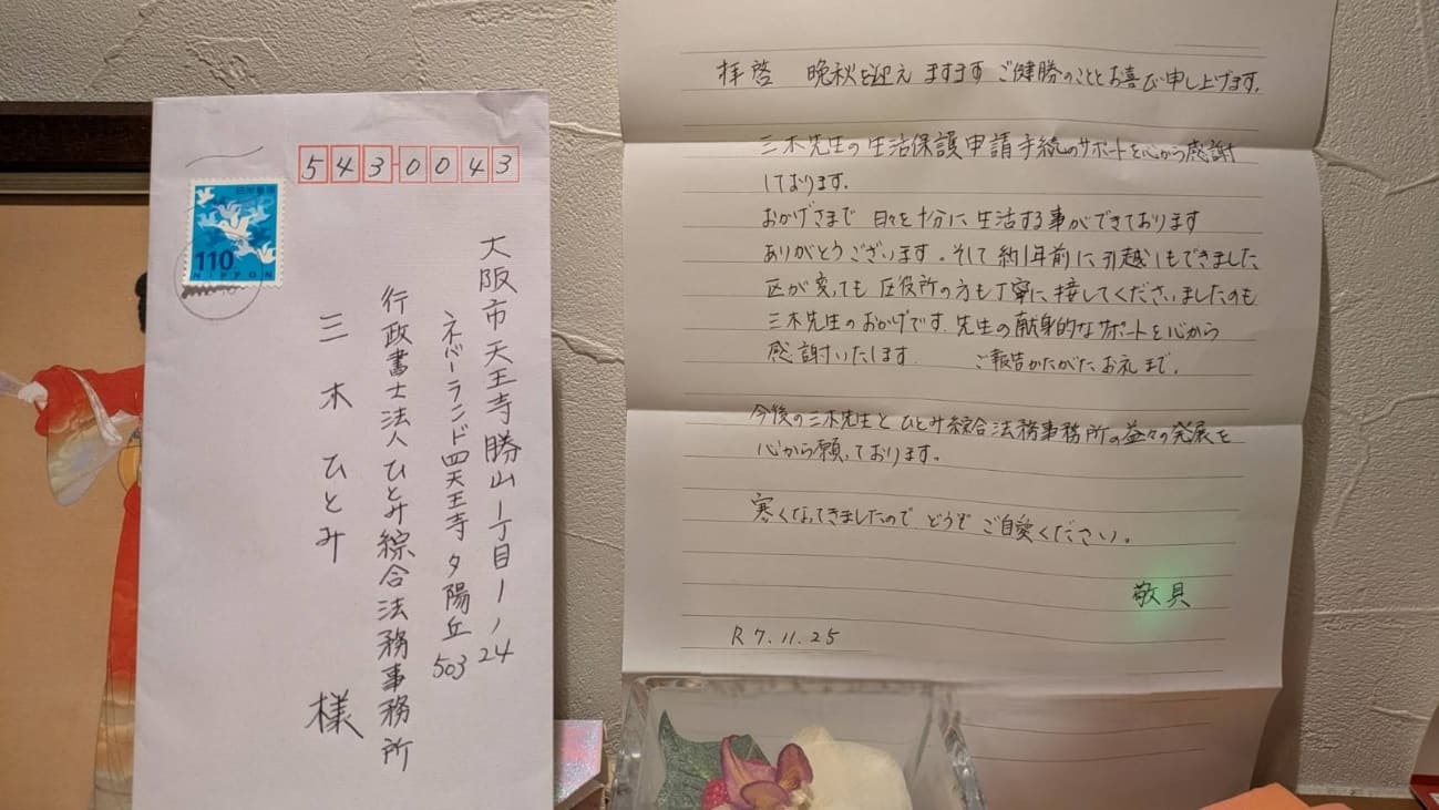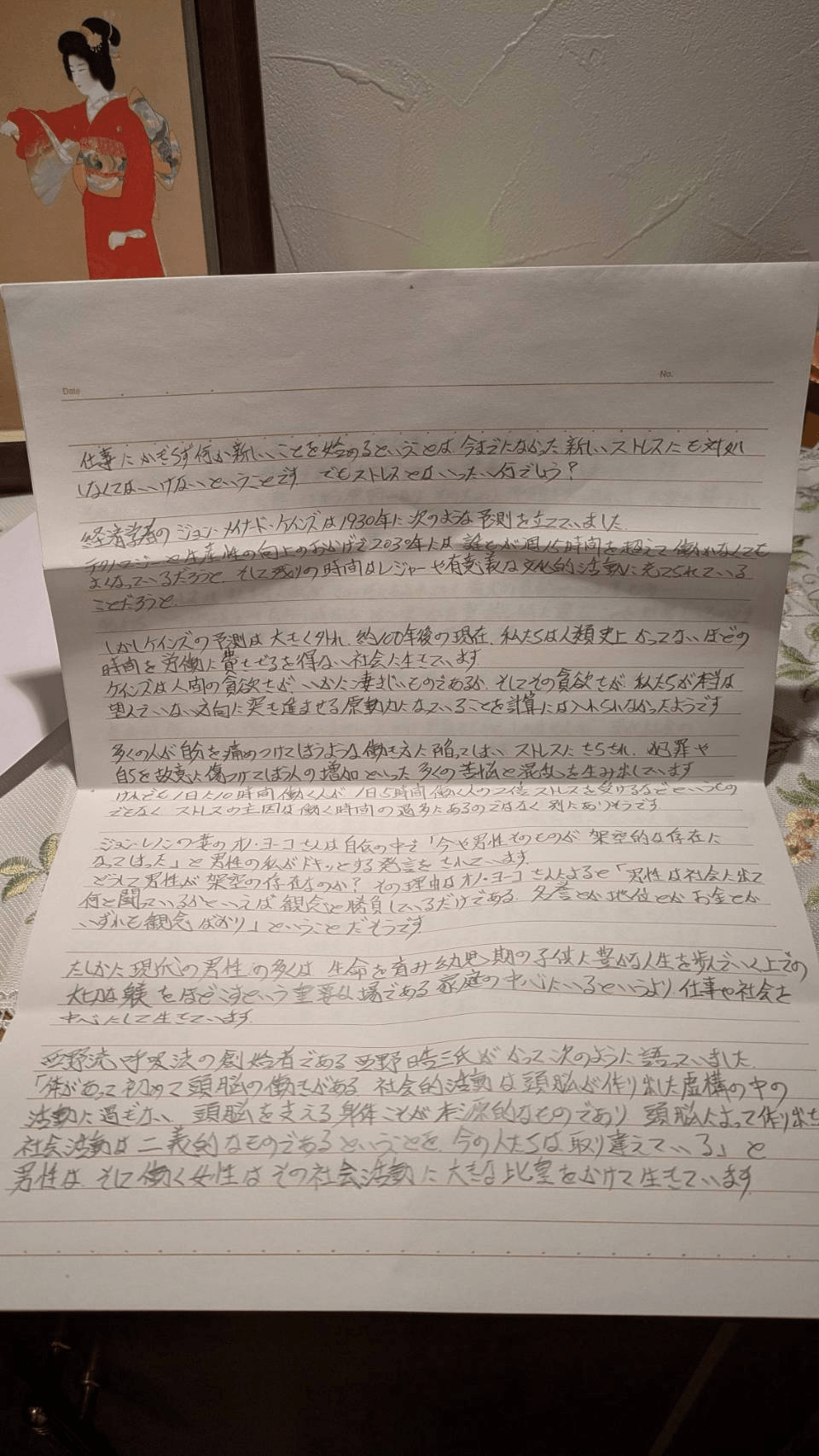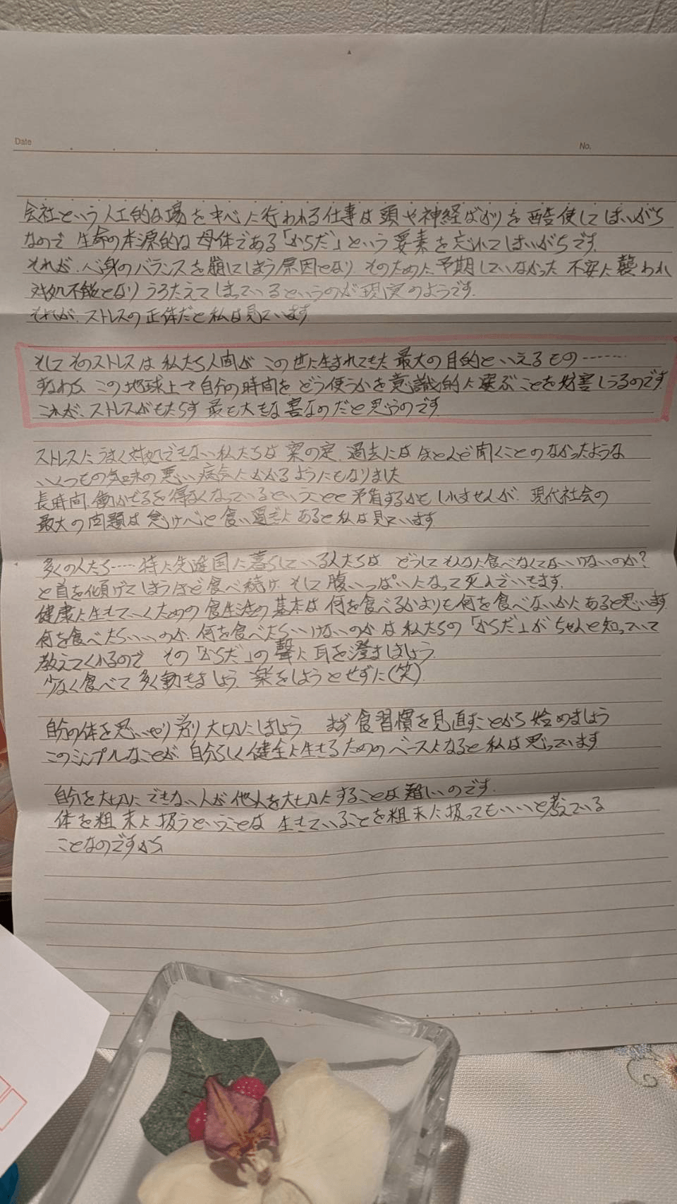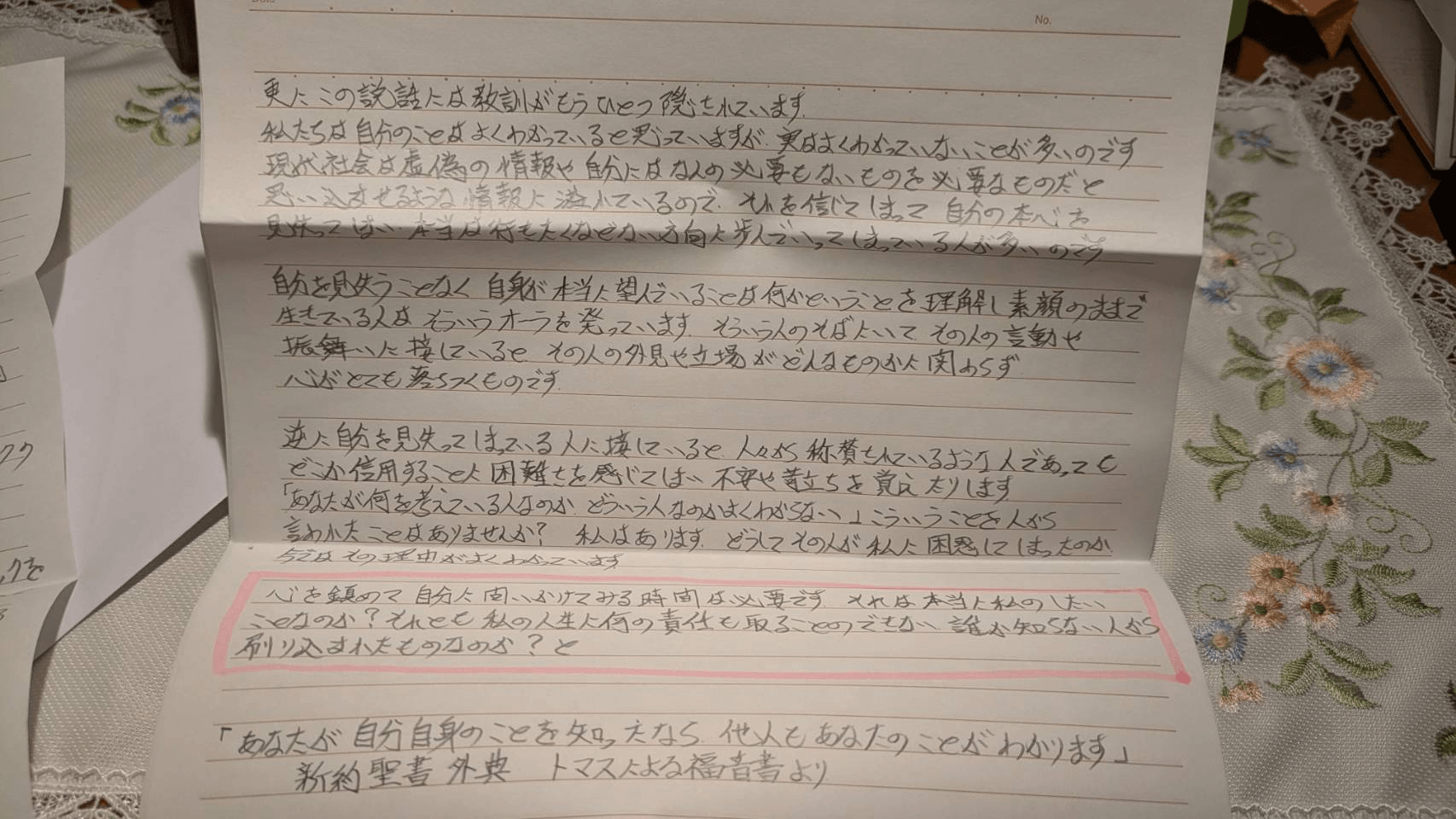 奈良県で70代の奥様の老々介護をされるO様の壮絶な体験、そこから生まれた思索を10枚以上の便せんに綴ってくださいました。