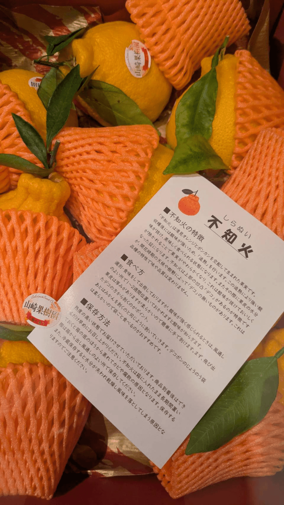 不知火(しらぬい)清見オレンジとポンカンをかけ合わせた品種だそうですが、糖度が高く種がなく、外の皮も薄く本当においしく感動しました。