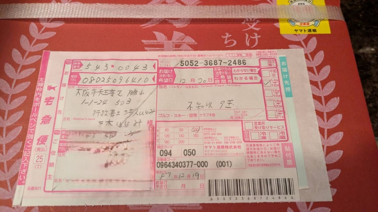 こちらは、大阪のお客様から頂きました。