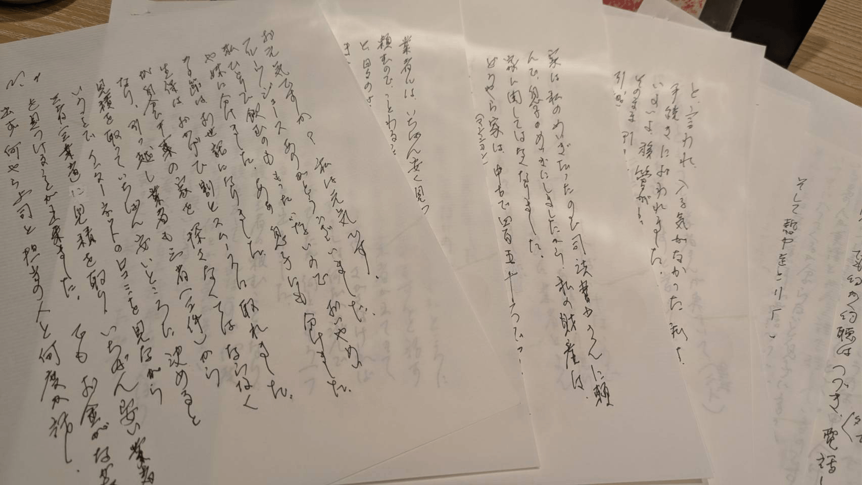 生保はおかげで、割とスムーズに取れました。が、自分で千葉の家を探さなくてはならなくなり、引越し業者も三者(三件)から見積もりを取って、いちばん安いところに決めるということで、インターネットの口コミを見ながら、三者(三業者)に見積もりを取り、いちばん安い業者を見つけることが出来ました。でも、お金がなかなか出ず、何やら上司と担当の人と何度か話し、業者には、いちばん安く見積もってくれたところに頼むので、ことわることになるかも知れませんと話すと、(判読できず・・・)無理という業者がでてきて、またやり直し。業者をもう一件さがさなければなりませんでした。八月に引越しは、何だか混んでいてたのか、なかなか見つからずでしたが、何とかもう一つの業者を見つけることが出来ました。