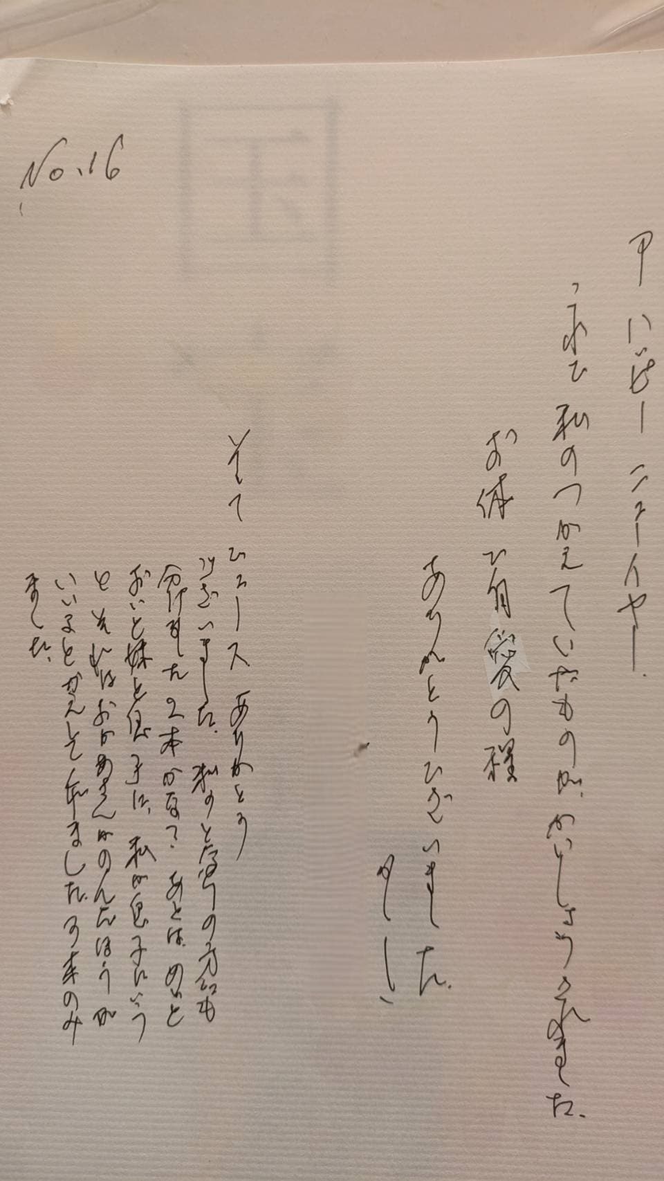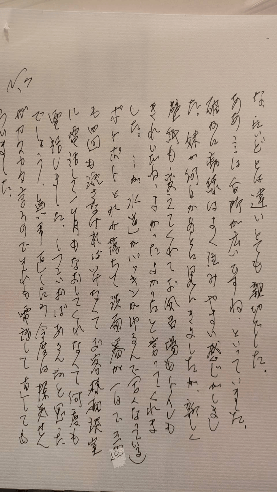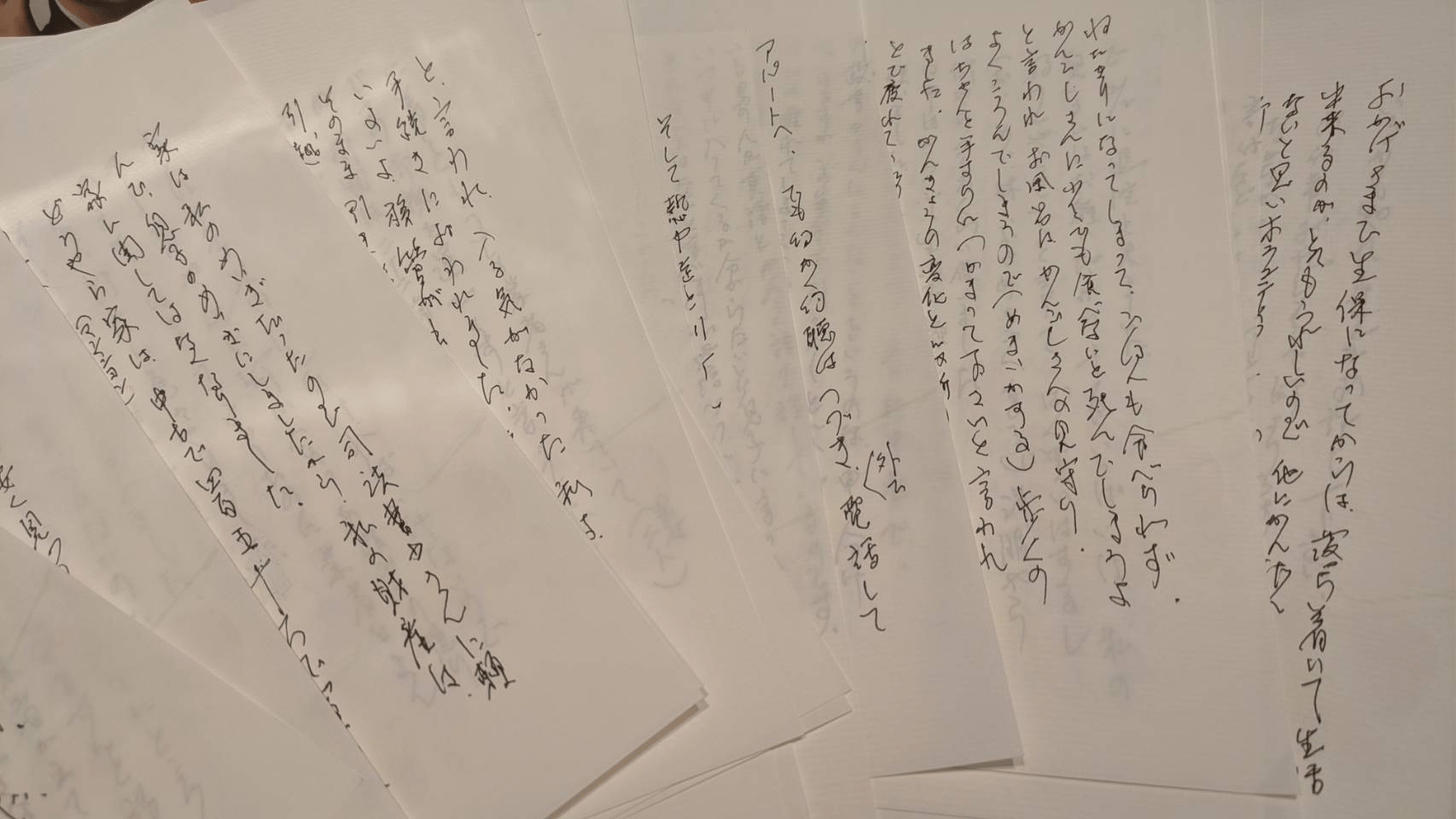 病院では、7/10より5か月入院し、最初の二カ月は、ねたきりになってしまって、なんにも食べられず、(判読できず)さんに、少しでも食べないと、死んでしまうよと言われ、お風呂は、かんごしさんの見守り、よくころんでしまうので(めまいがする)歩くのは、ちゃんと手すりにつかまって下さいと言われました。かんきょうの変化と、役所の手続きと、ひっこしとで、疲れていたのでしょう。あと、熱中症で、行政書士さんにこんなことをいうのは申し訳ないのですが、この年齢で、引越しと役所の手続きには、疲れてしまっていたのでしょう。