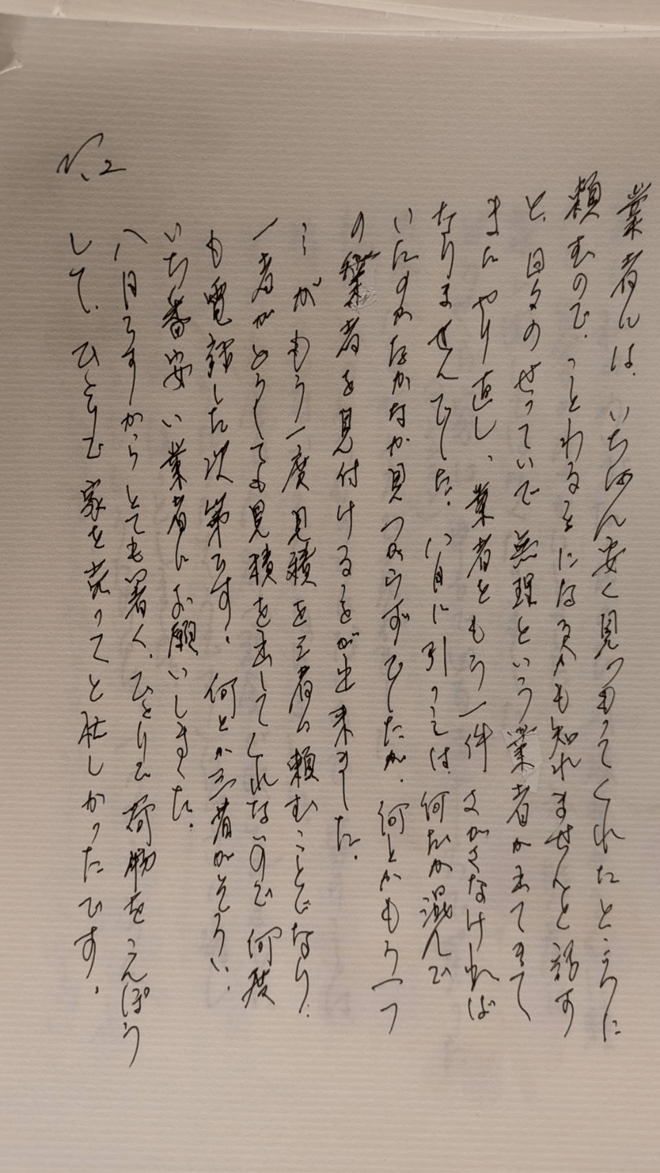 ・・・が、もう一度、見積もりを三者に頼むことになり、一者がどうしても見積もりを出してくれないので、何度も電話した次第です。何とか三者がそろい、一番安い業者にお願いしました。