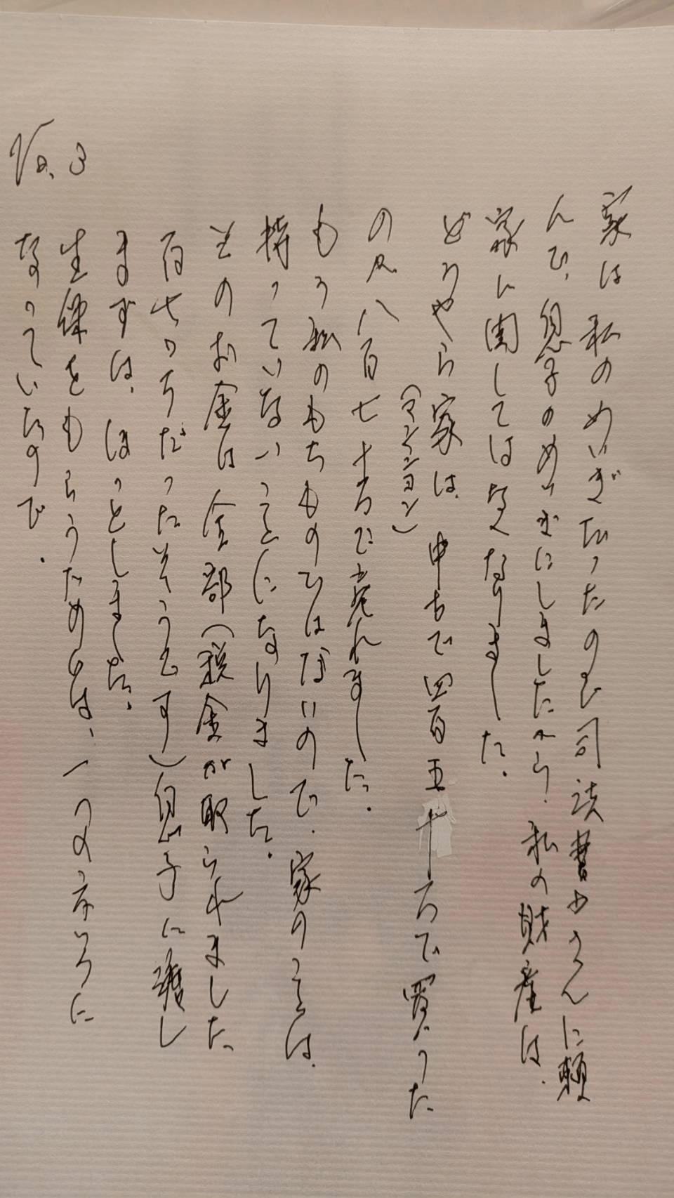 家は私のめいぎだったので、司法書士さんに頼んで、息子のめいぎにしましたから、私の財産は、家に関してはなくなりました。