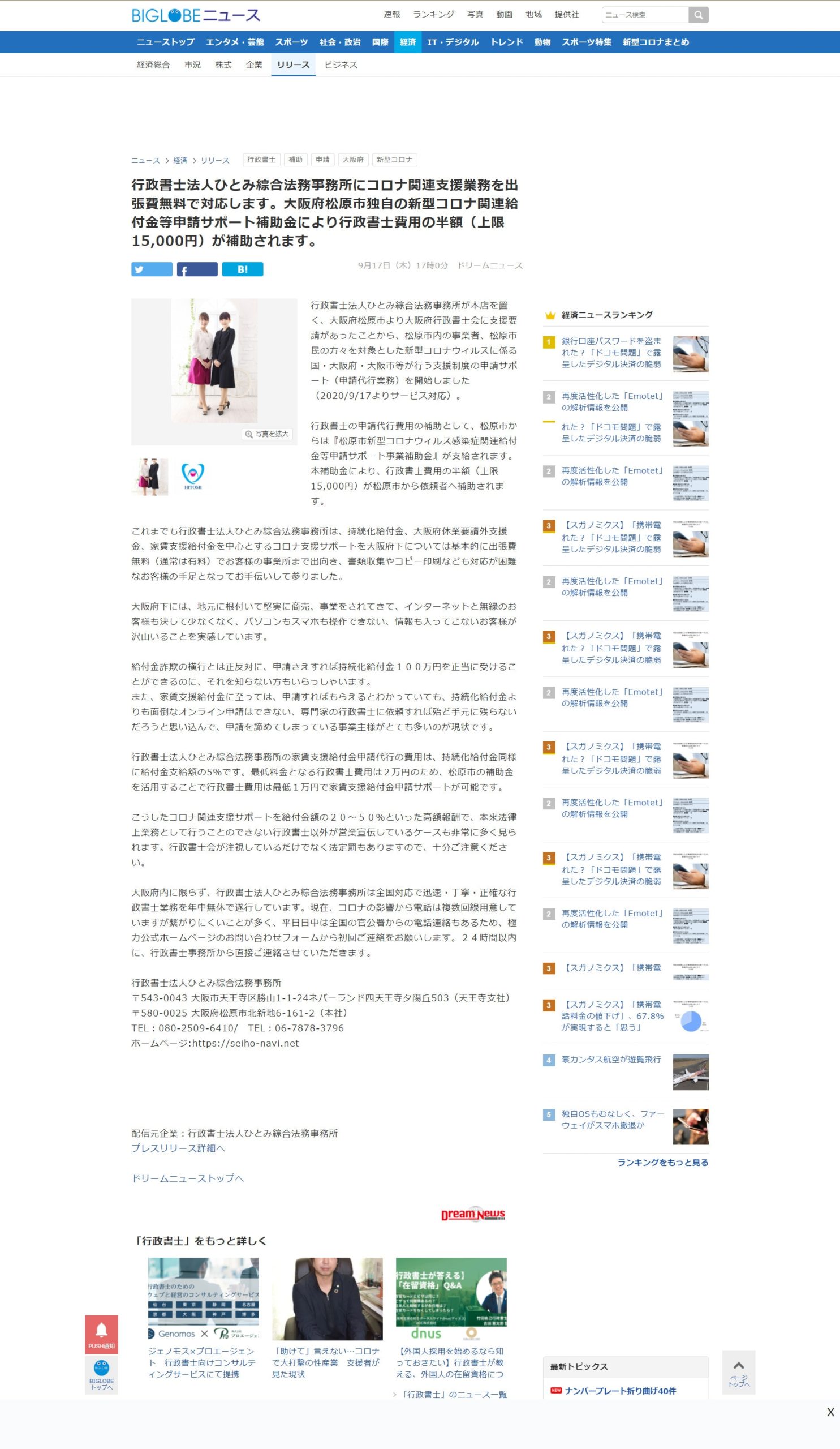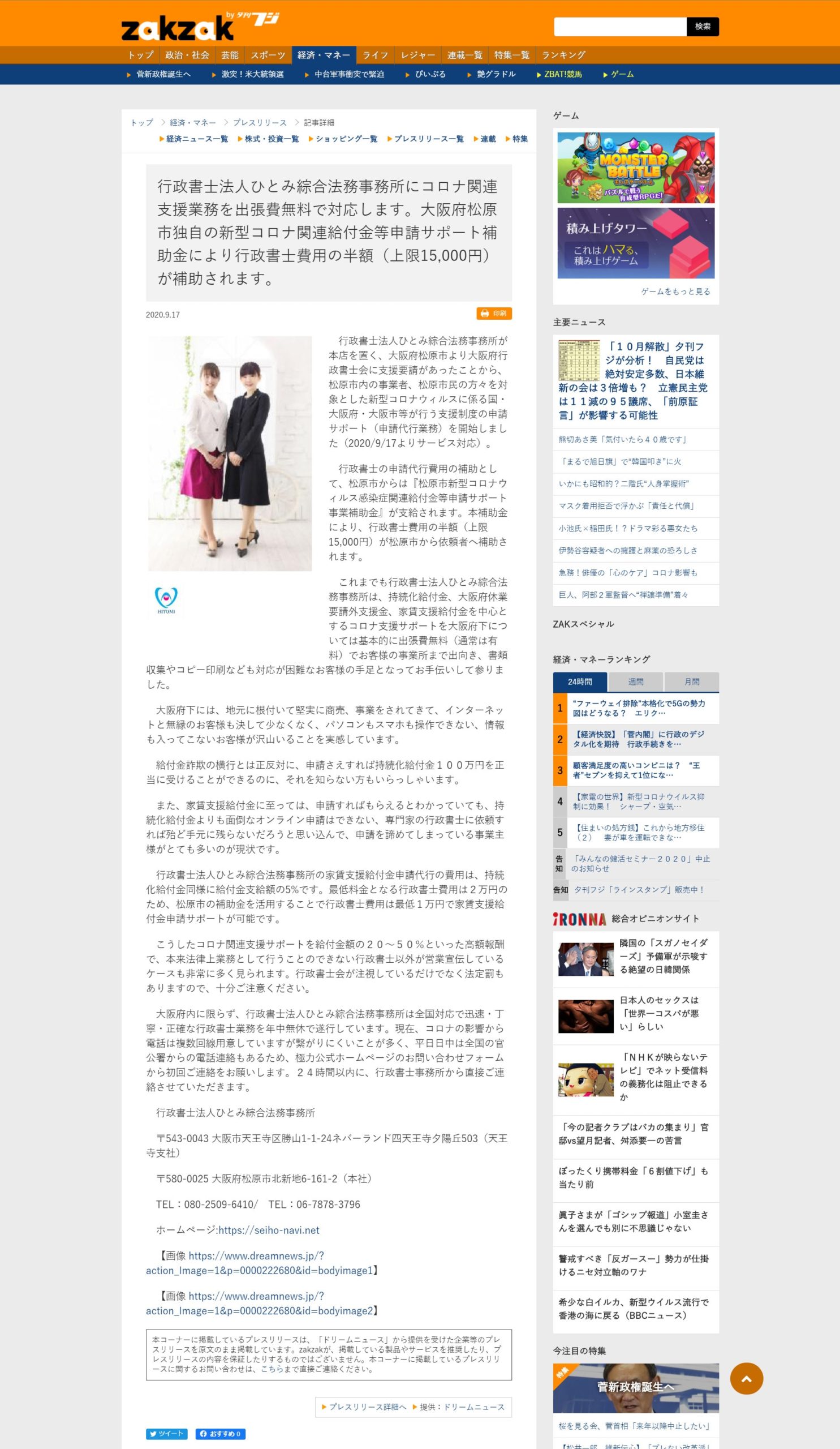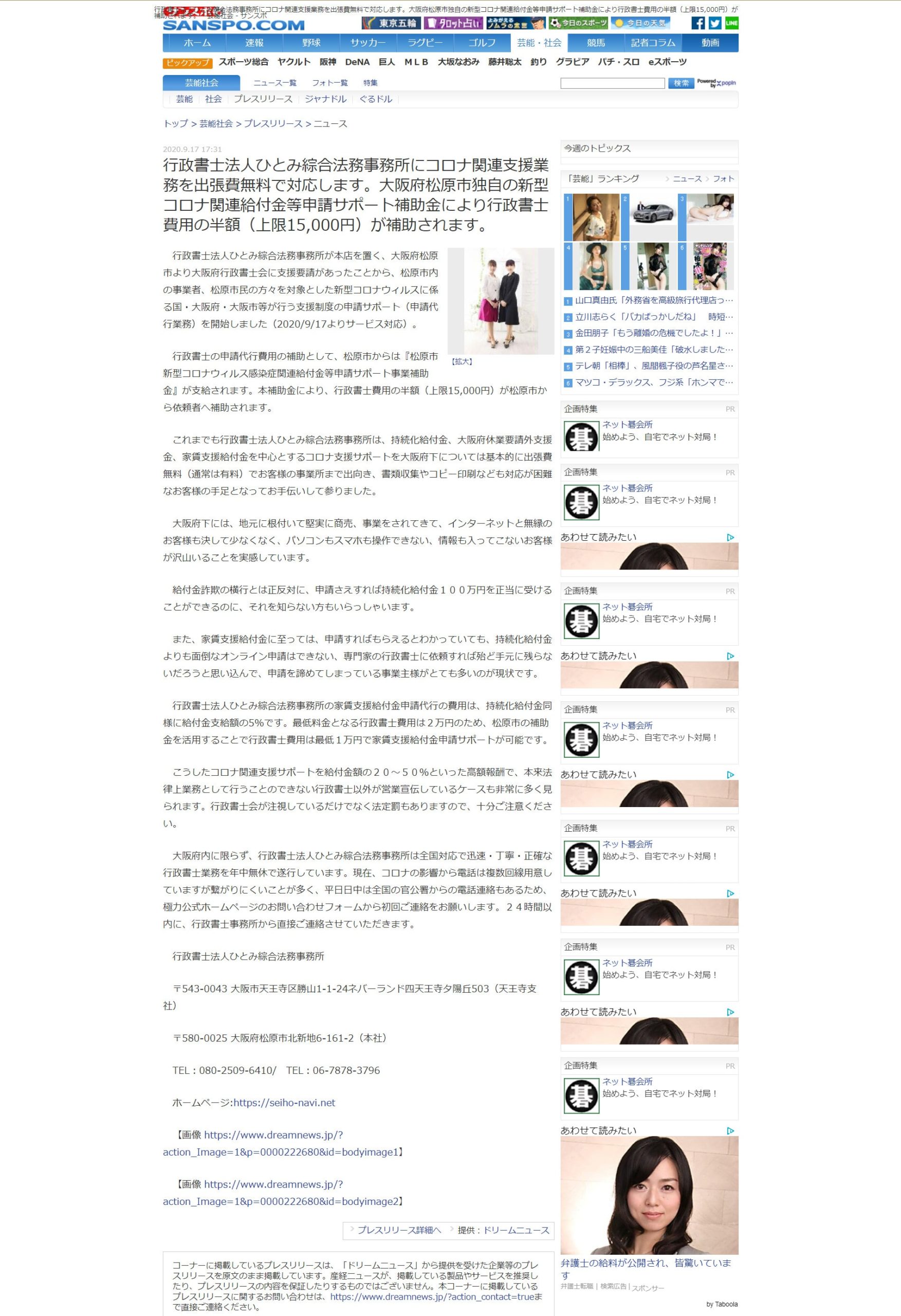 2020-09-17 / 最終更新日 : 2020-09-17 ひとみ綜合法務事務所 夕刊フジ公式サイト:zakzakにプレスリリースが掲載されました 2020/9/17 夕刊フジ公式サイト:zakzakにプレスリリースが掲載されました。 →行政書士法人ひとみ綜合法務事務所にコロナ関連支援業務を出張費無料で対応します。大阪府松原市独自の新型コロナ関連給付金等申請サポート補助金により行政書士費用の半額(上限15,000円)が補助されます。 – zakzak:夕刊フジ公式サイト FacebookXBlueskyHatenaCopy
