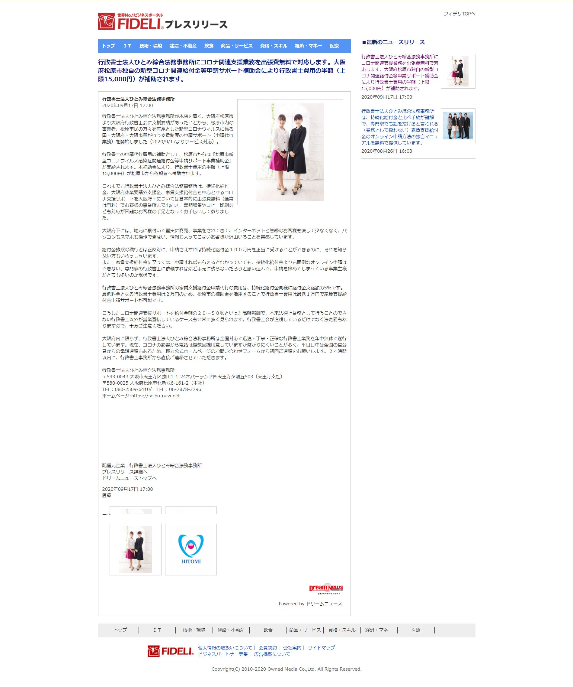 2020-09-17 / 最終更新日 : 2020-09-17 ひとみ綜合法務事務所 徳島新聞 電子版にプレスリリースが掲載されました 2020/9/17 徳島新聞のWEBメディア:徳島新聞 電子版にプレスリリースが掲載されました。 →行政書士法人ひとみ綜合法務事務所にコロナ関連支援業務を出張費無料で対応します。大阪府松原市独自の新型コロナ関連給付金等申請サポート補助金により行政書士費用の半額(上限15,000円)が補助されます。|企業リリース|徳島新聞 FacebookXBlueskyHatenaCopy