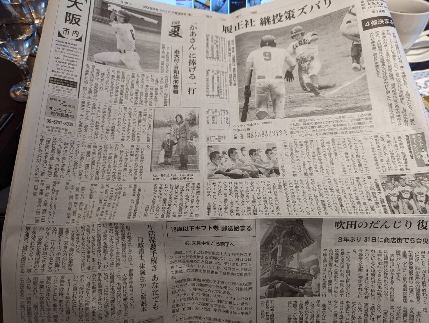 2022年7月28日朝日新聞(大阪版)の朝刊に取材記事が掲載されました