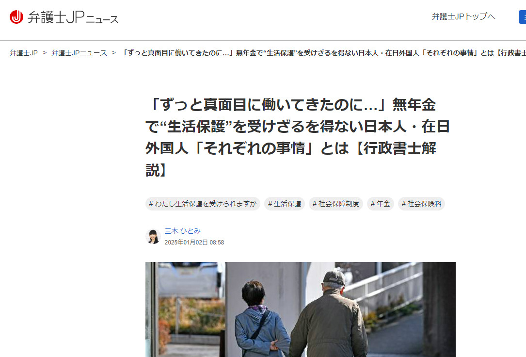 「ずっと真面目に働いてきたのに…」無年金で“生活保護”を受けざるを得ない日本人・在日外国人「それぞれの事情」とは【行政書士解説】 | 弁護士JPニュース