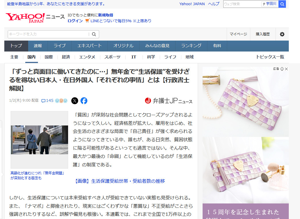 「ずっと真面目に働いてきたのに…」無年金で“生活保護”を受けざるを得ない日本人・在日外国人「それぞれの事情」とは【行政書士解説】(弁護士JPニュース) – Yahoo!ニュース