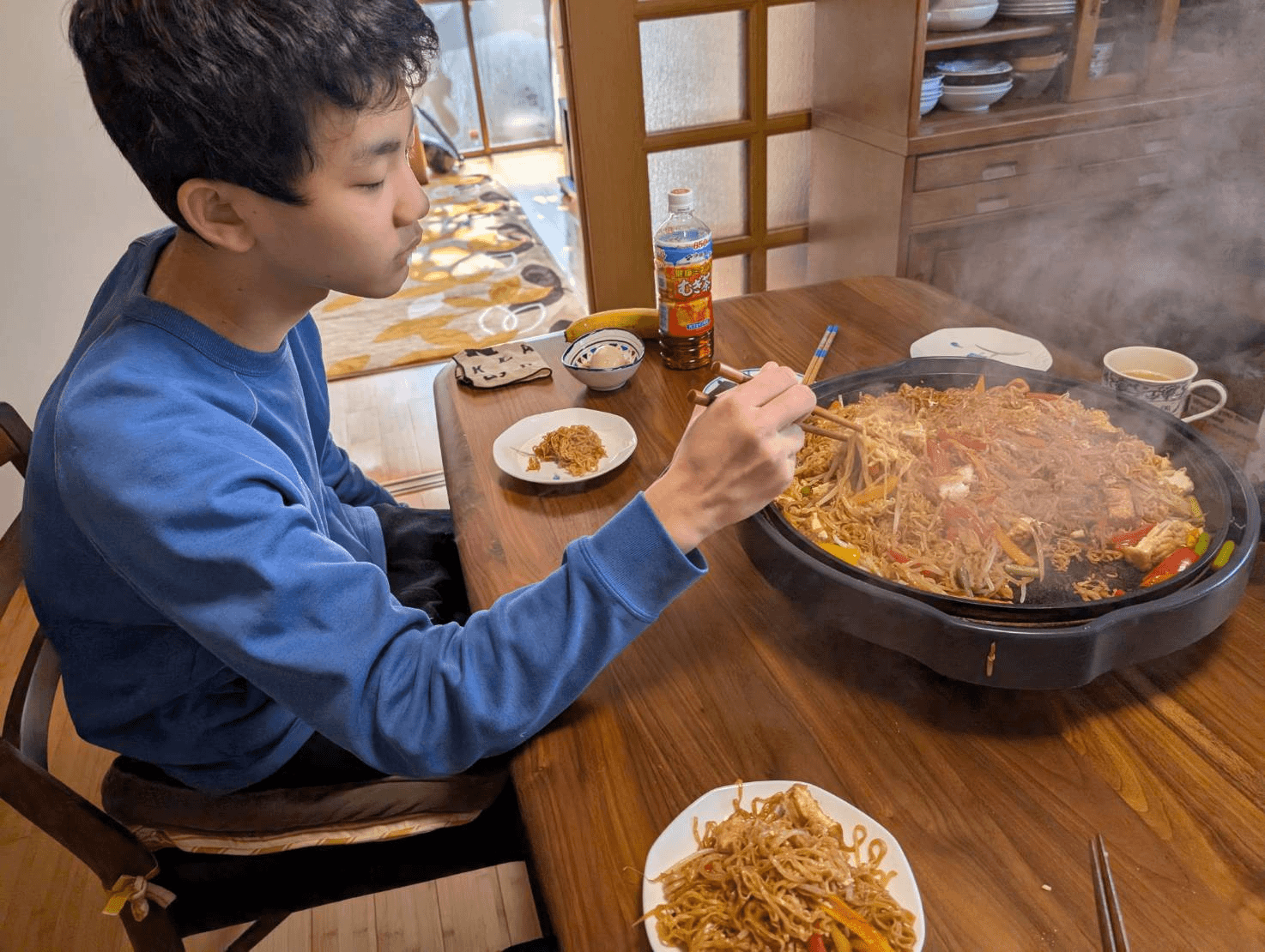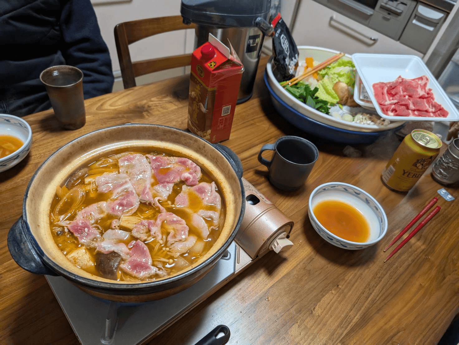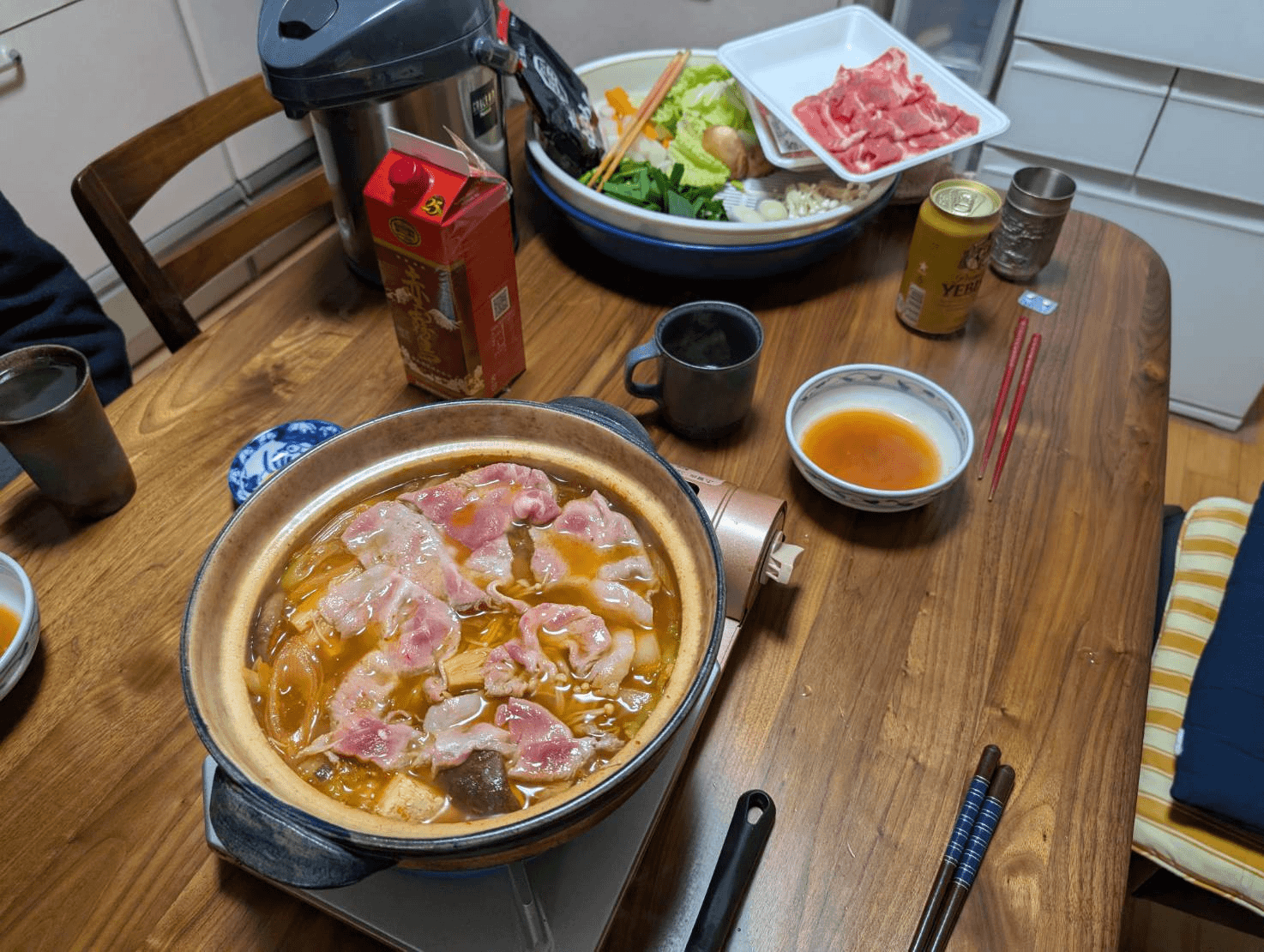 2月2日、本日の昼食はカレーうどんと恵方巻。明日は節分。