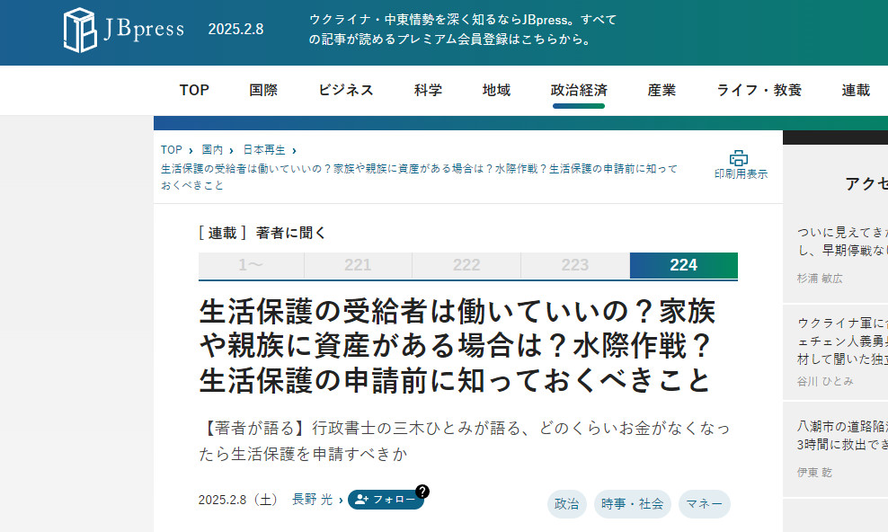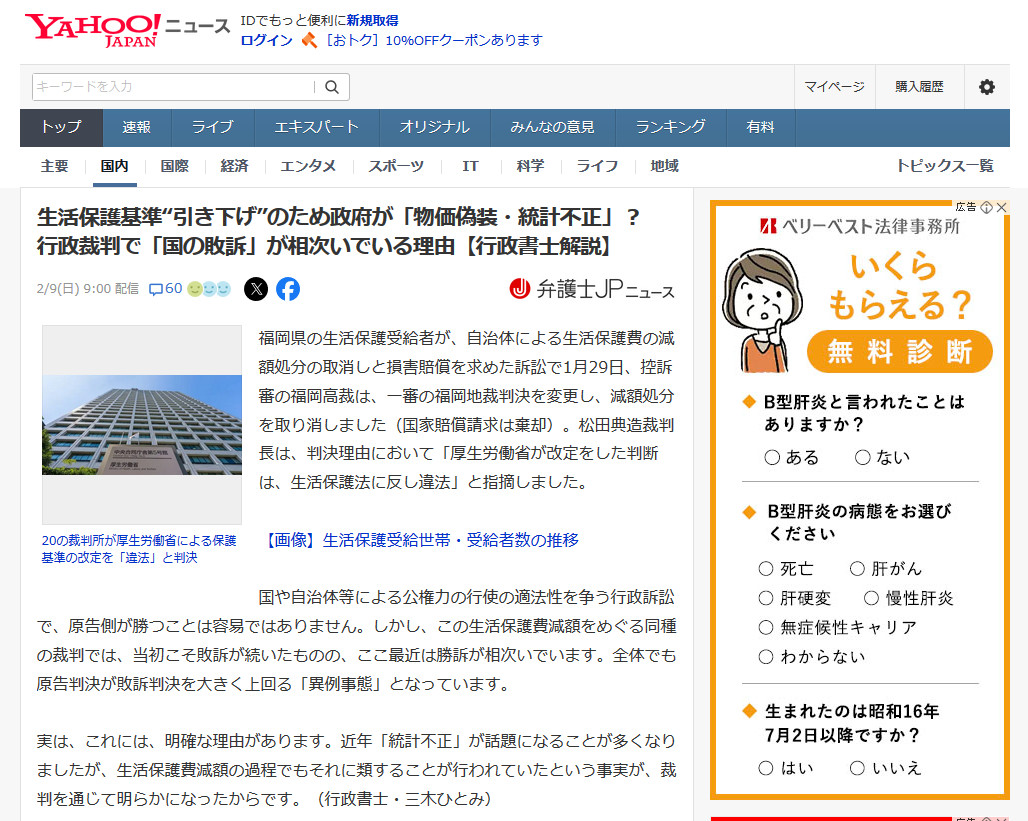「弁護士JP生活保護連載」第2回記事 令和7年2月9日