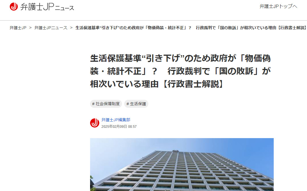 →生活保護基準“引き下げ”のため政府が「物価偽装・統計不正」? 行政裁判で「国の敗訴」が相次いでいる理由【行政書士解説】(弁護士JPニュース) – Yahoo!ニュース