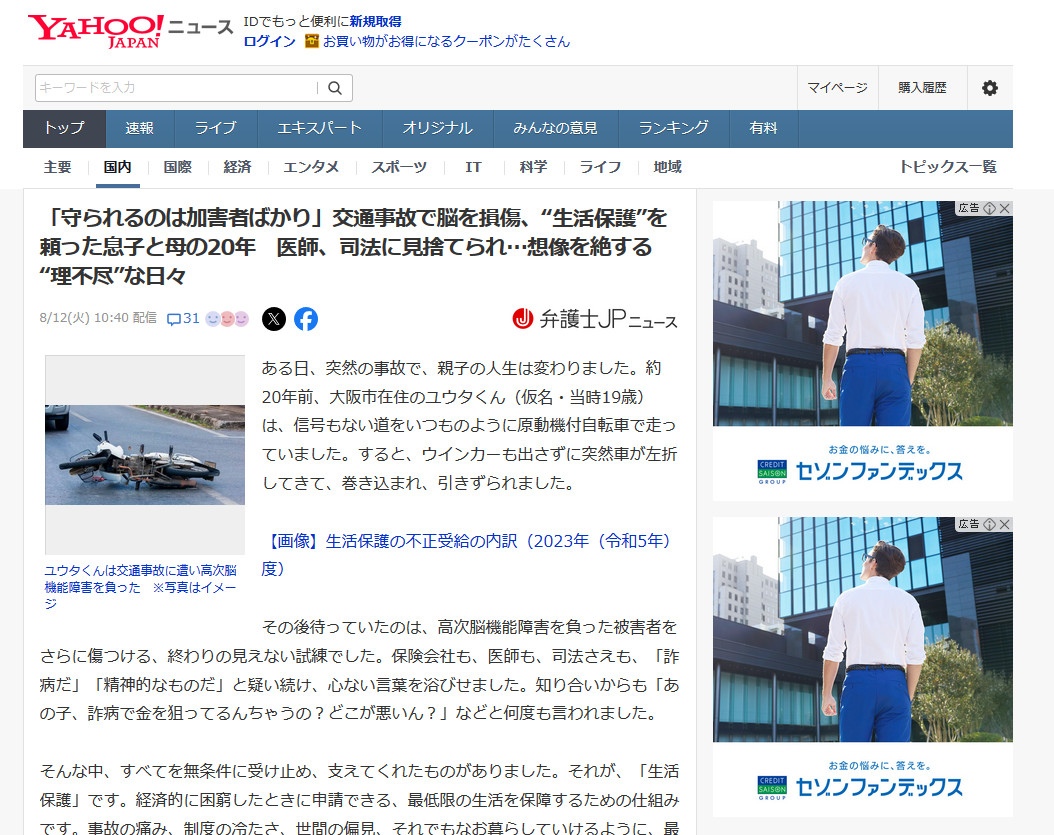 →「守られるのは加害者ばかり」交通事故で脳を損傷、“生活保護”を頼った息子と母の20年 医師、司法に見捨てられ…想像を絶する“理不尽”な日々 | 弁護士JPニュース
