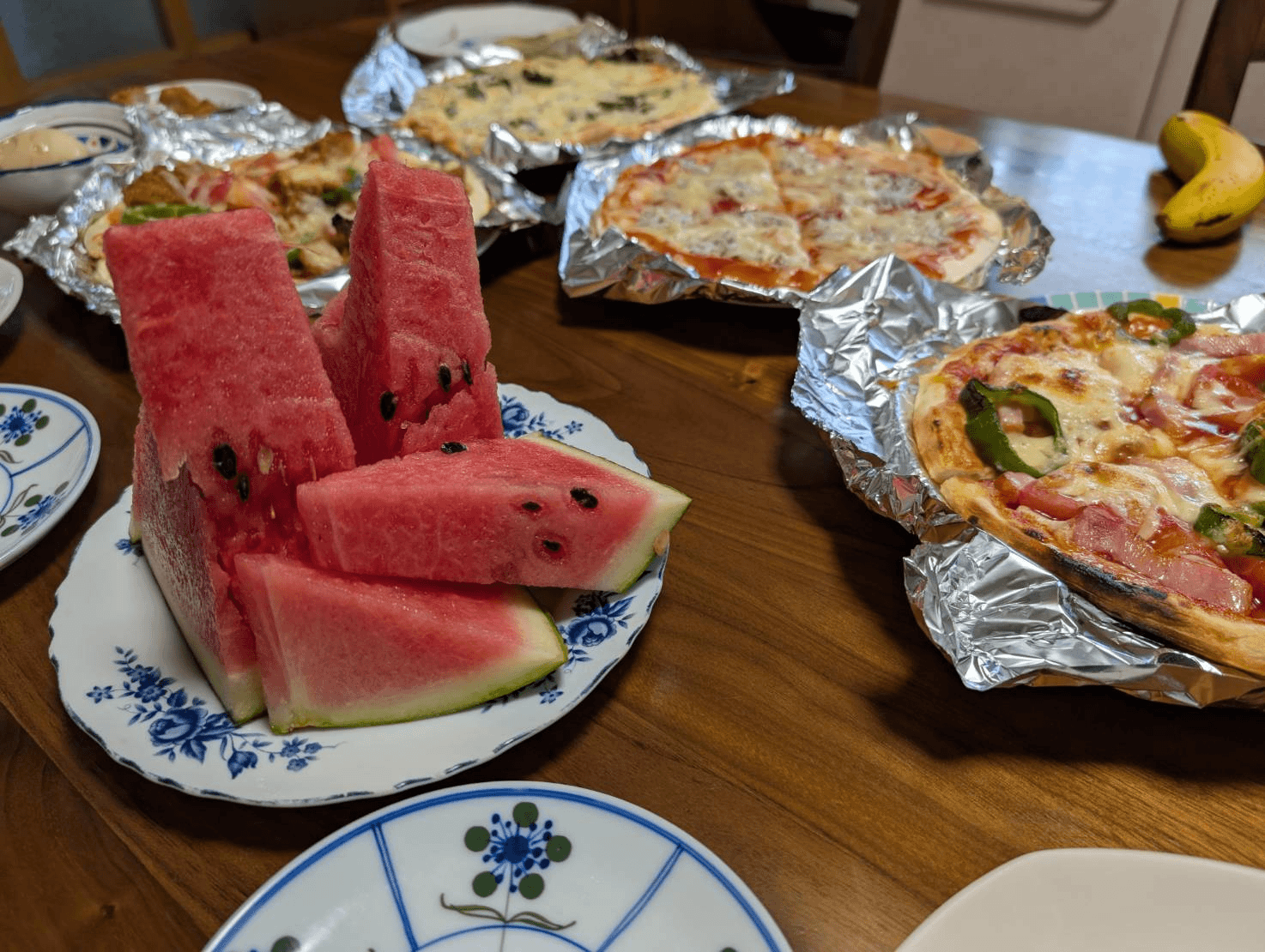 夏の風物詩スイカと手作りピザの昼食