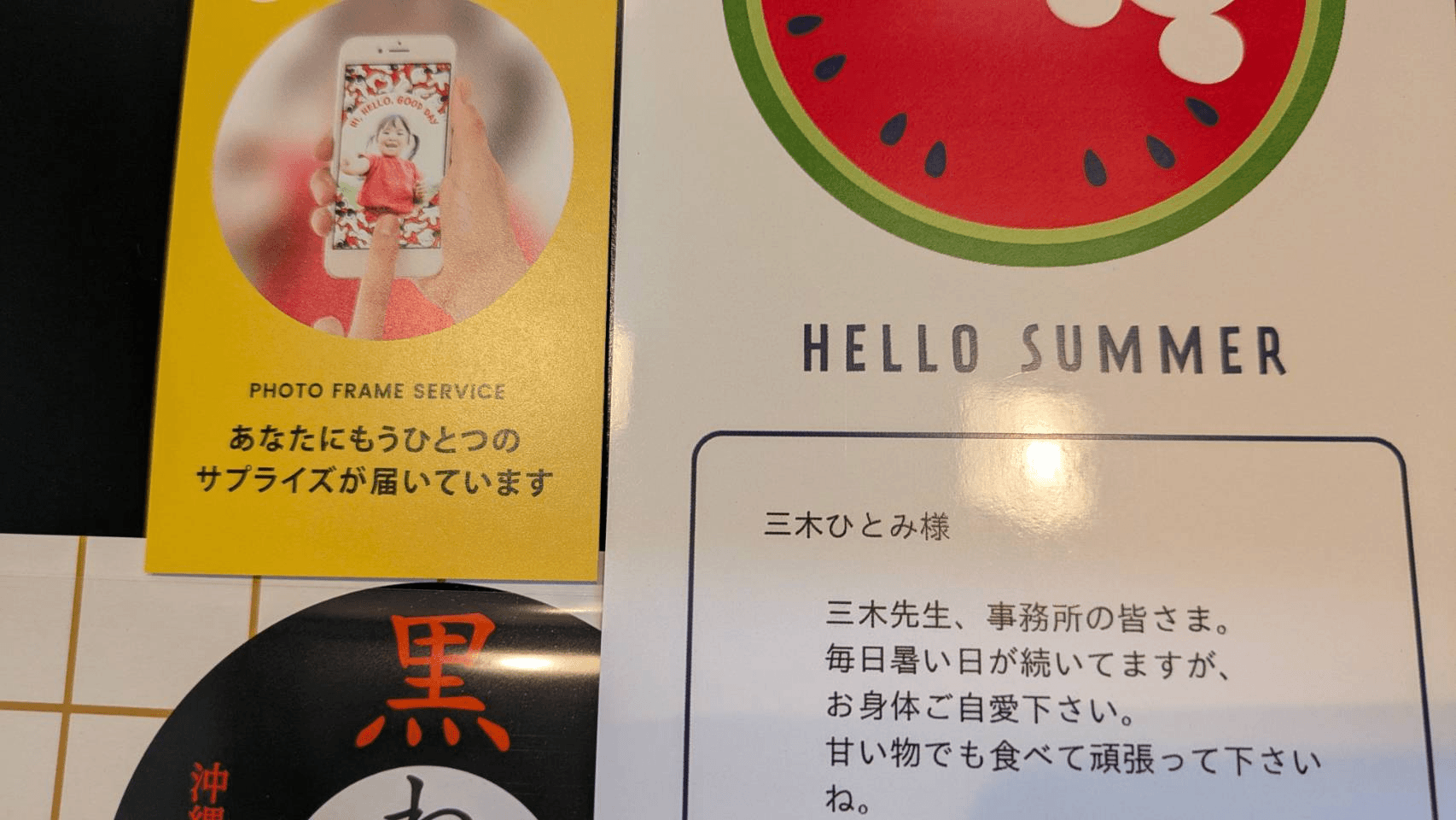 今朝届いたばかりのお客様からの夏のギフトに、こんな可愛い写真が撮れるアプリも入っていました!