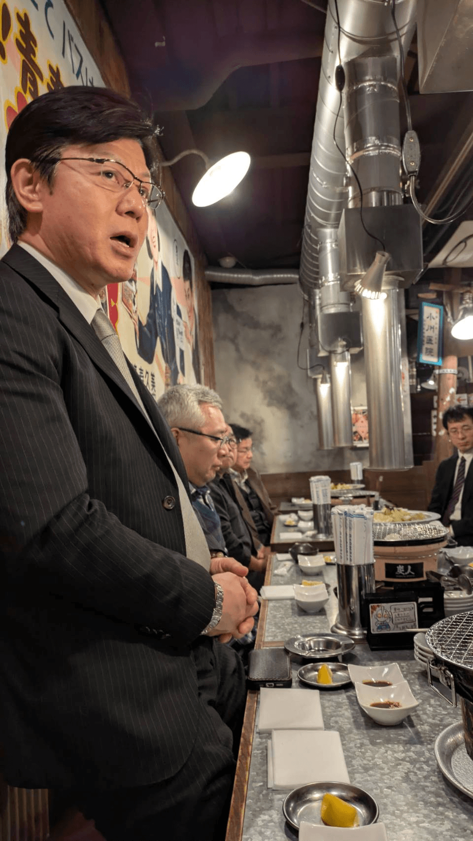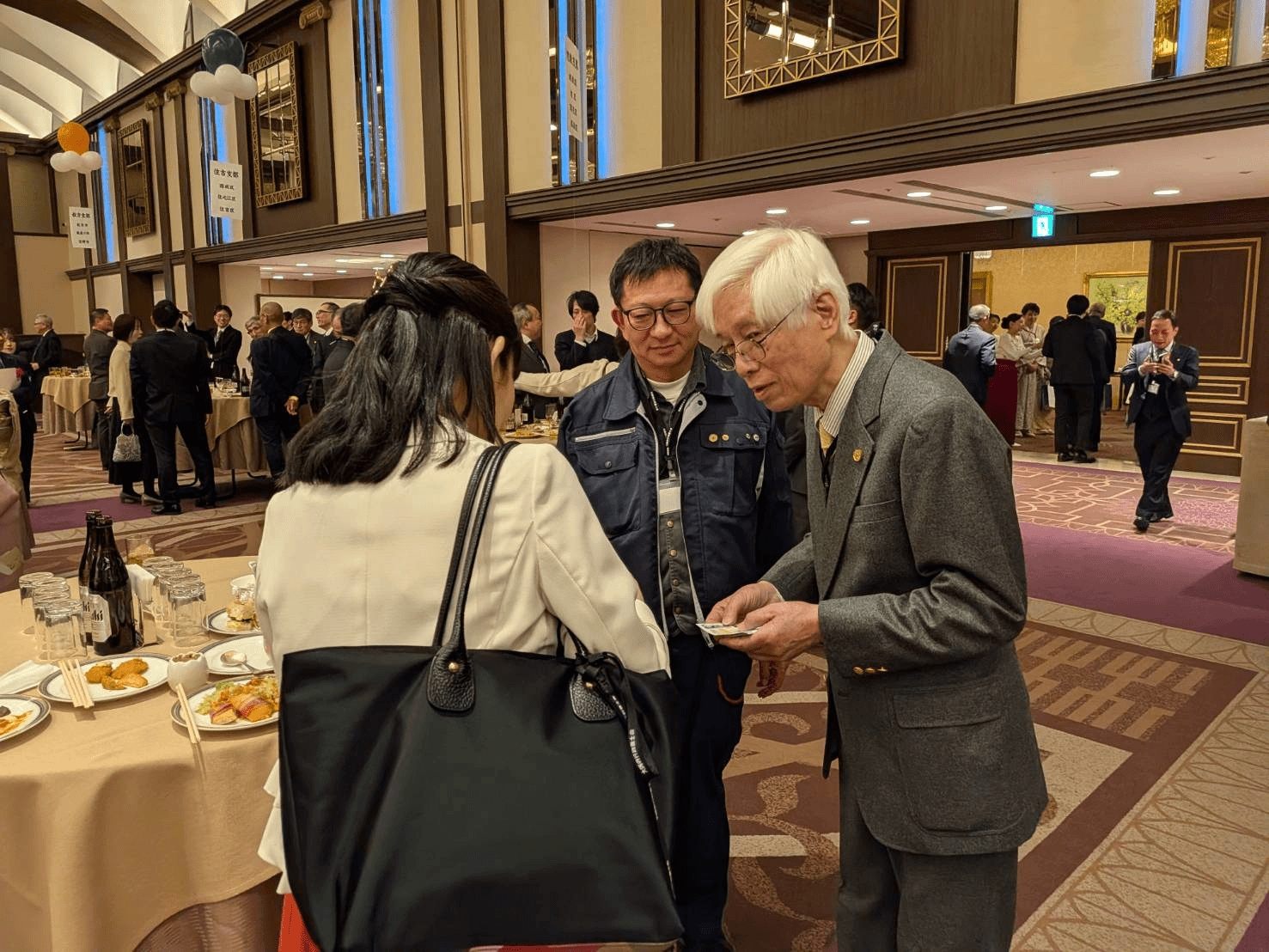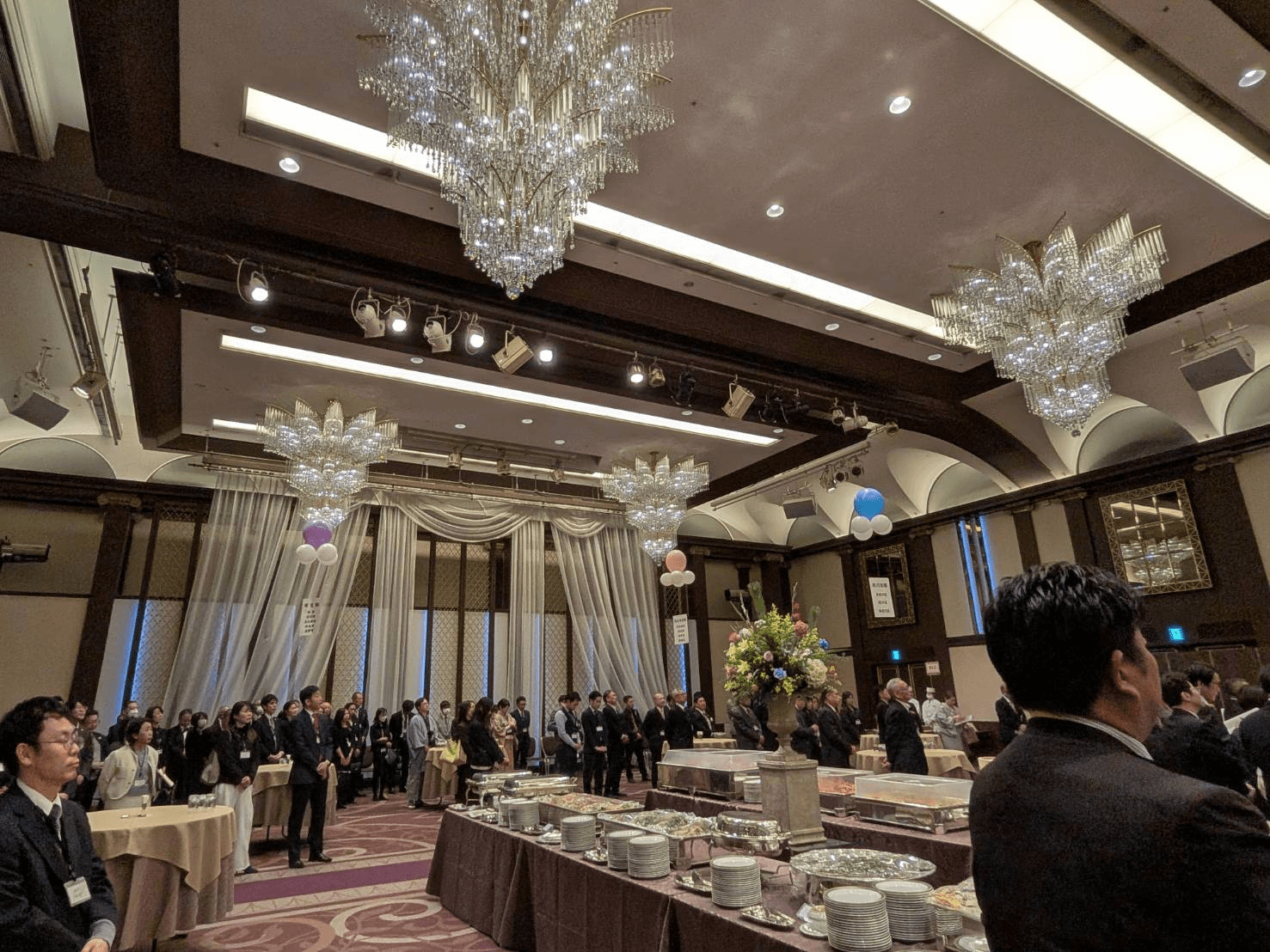 壁伝いにお立ちになって熱気の中スーツも着用で、頭が下がります。さすが会長。