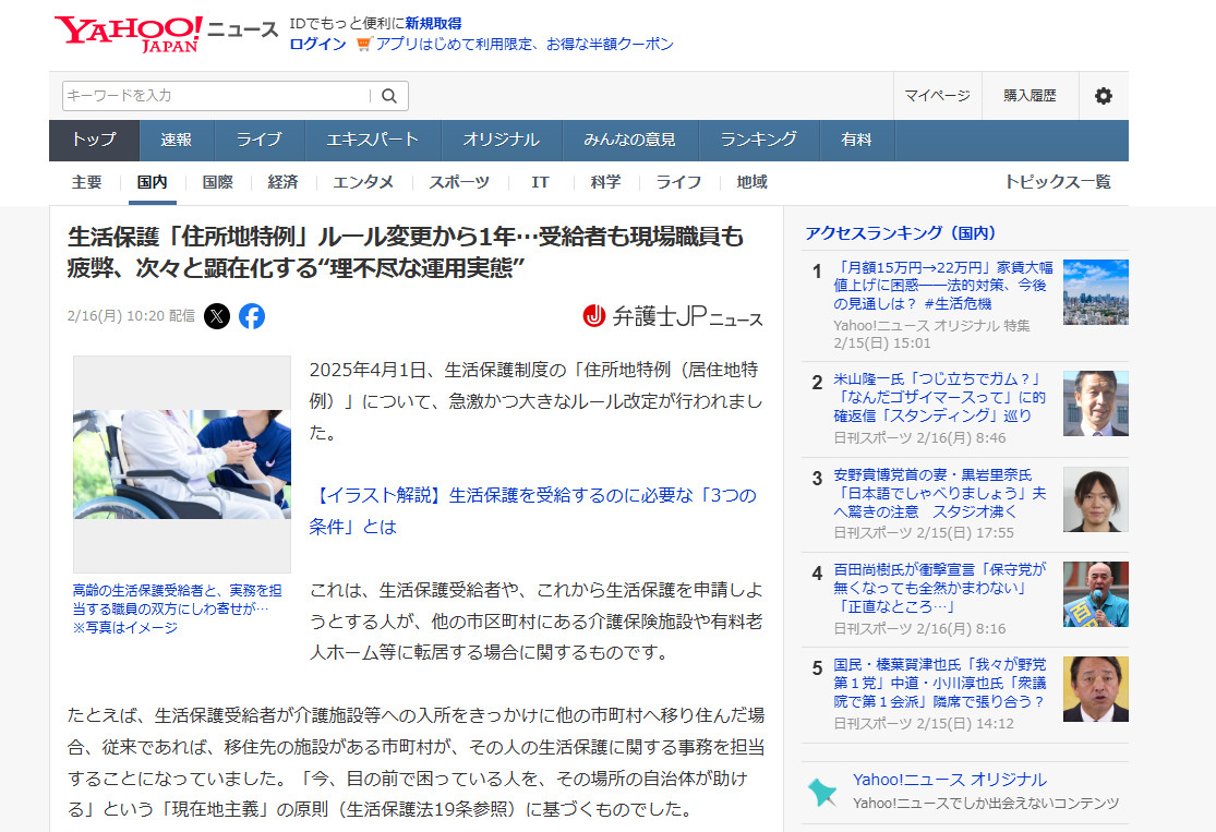 「弁護士JP生活保護連載」 第48回記事 令和8年2月16日